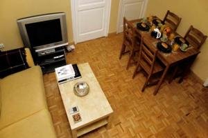 Important sites such as the Puerta del Sol, the Royal Palace, Opera and Reina Sofia are also within walking distance, only about 10 minutes. For nightlife, the neighbouring Lavapies and Los Austrias area is a perfect place to go bar-hopping. The apartment has three bedrooms: two doubles and a twin. In the living room the sofa bed sleeps two more. This also doubles as the dining area with a table with four chairs (more chairs are available on request). The apartment also has a TV/DVD player, internet connection, bathroom with bathtub, fully fitted kitchen and central heating throughout. It's located on the first floor with a lift and is only 200 metres from the entrance to the La Latina metro station.